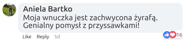 1 x Zabawka „Żyrafa Teleskopowa” z przyssawkami i LED w kolorze wybranym przez Ciebie.